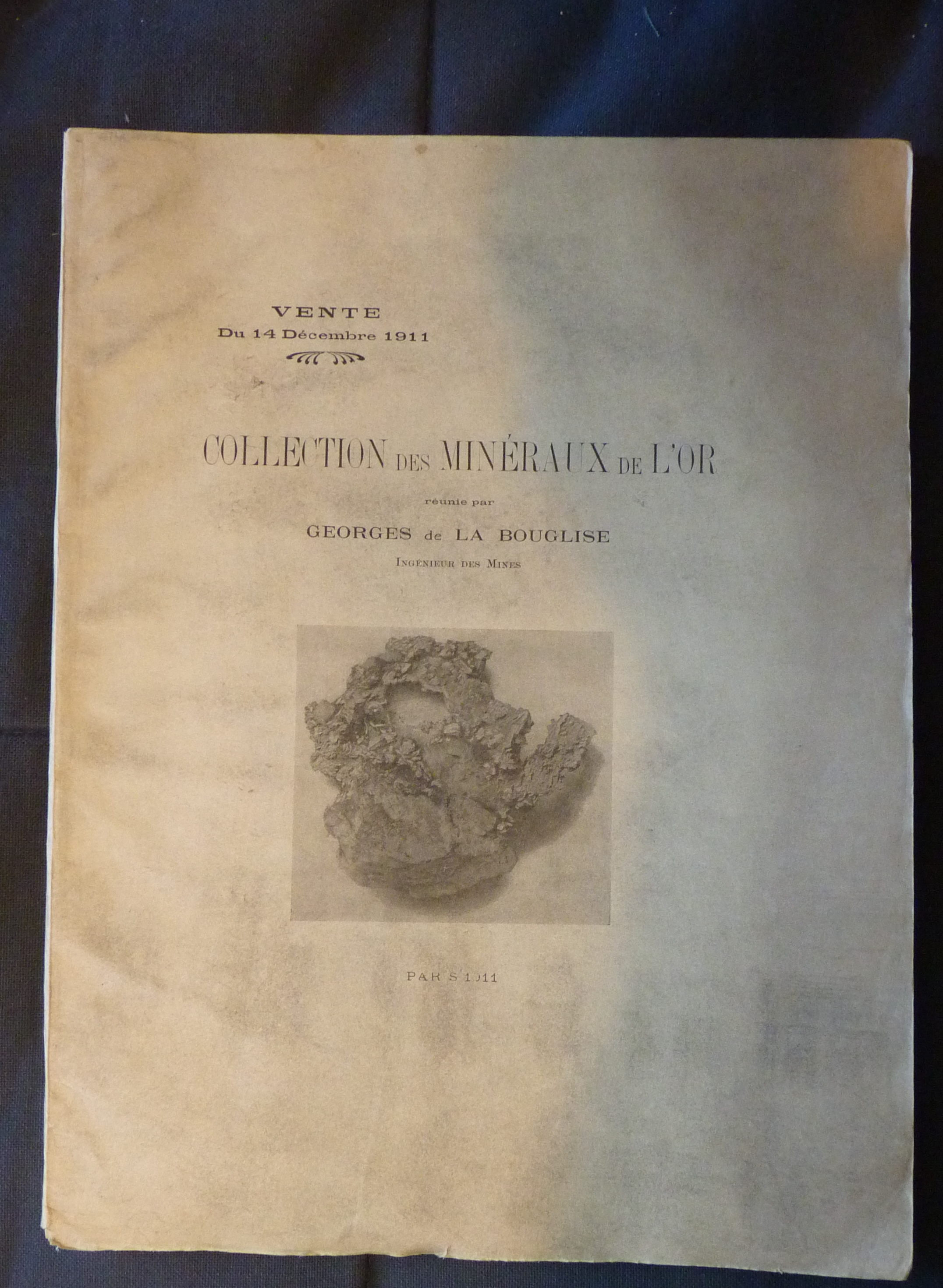 "After his death, Bouglise's considerable collection of gold specimens was offered for sale at public auction on December 14, 1911, by the Parisian mineral dealer Alexandre Stuer, and it was purchased in toto by Albert C. Burrage of Boston, Massachusetts. The collection subsequently found its way into the Harvard Mineralogical Museum in 1948 as a bequest of Burrage, who was a member of the Harvard class of 1883. The treasure remains there to this day."